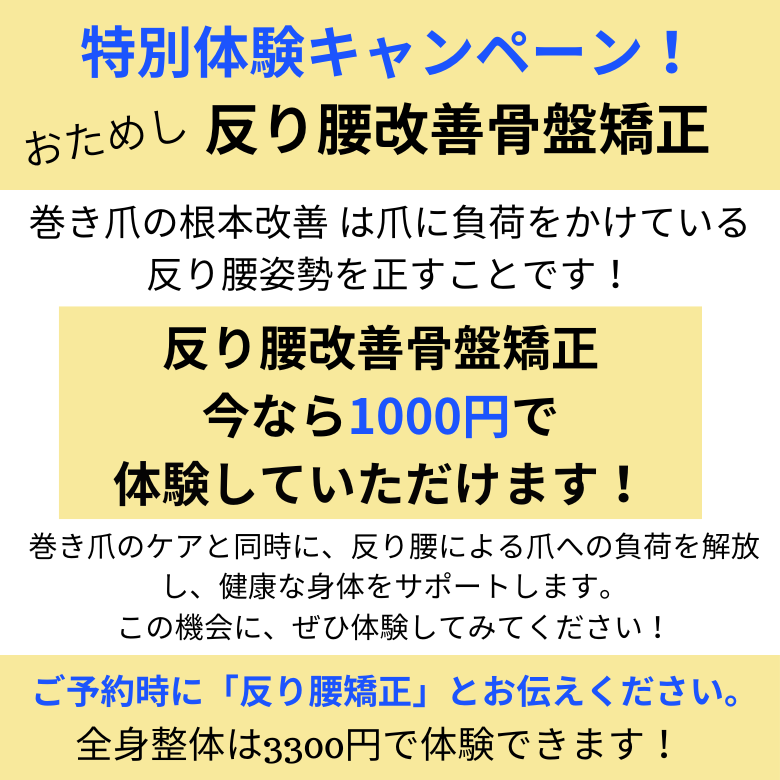 板橋で巻き爪の痛みにお困りの方へ。巻き爪の原因は反り腰にあります。