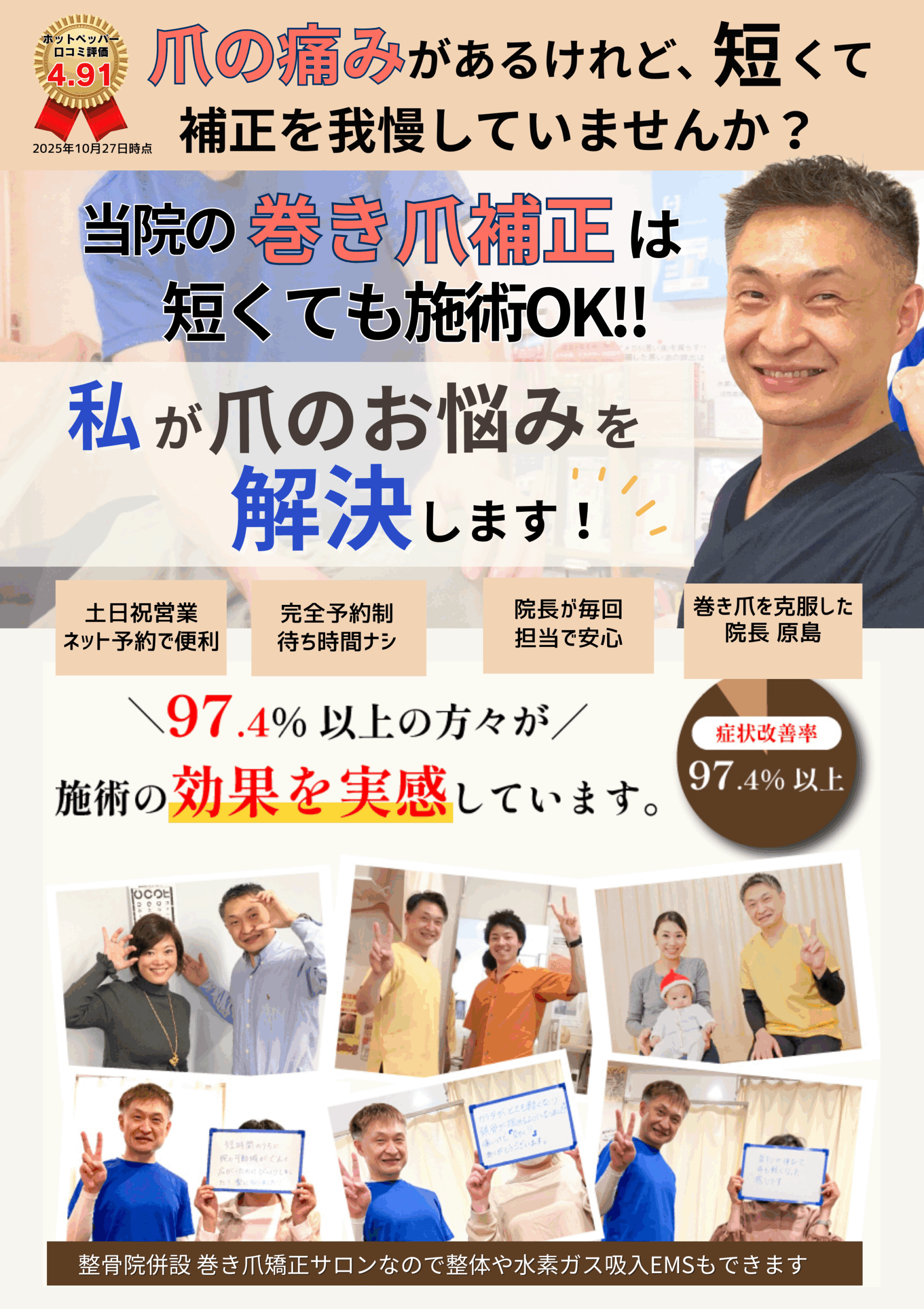 もし上記のようなお悩みがあるなら、 板橋巻き爪補正センター(アトリエ整骨院併設) でそのつらい巻き爪の改善を目指しませんか?