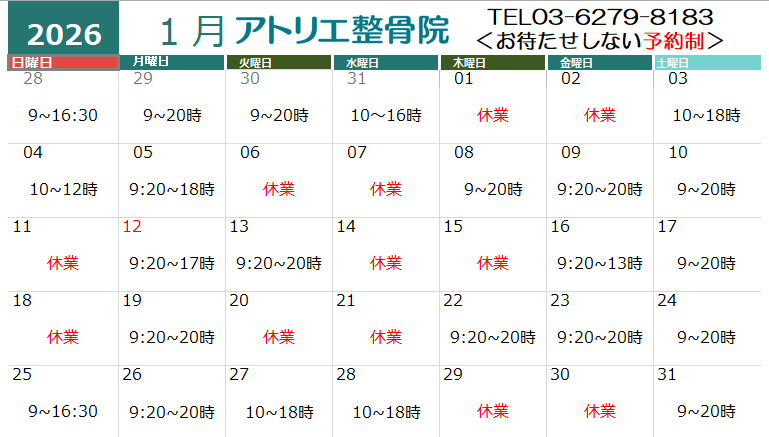※予定表なので、変更する可能性もあります。その際は随時、更新いたします。また、営業日数が少ないため、ご希望の時間が取れないことがあります。お早めのご予約をお願いいたします。