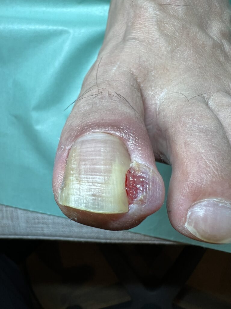 この方は、カットしていた爪の再発部位を中心に集中的なケアを実施。1回目の施術で痛みが軽減し、通院ごとに状態が安定、1ヶ月後には旅行にも行きやすくなりました。