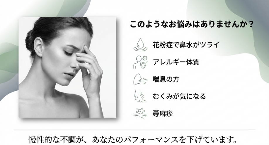 こうした不調は、命に関わるほどではなくても、日常の快適さを大きく下げてしまいます。